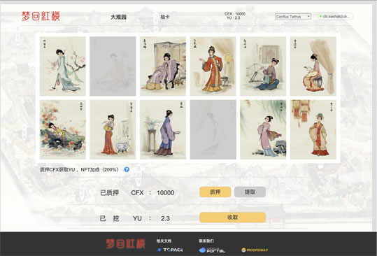 藍藍設計和長期客戶一起合作,設計開發了這個網站。團隊人員繪制了紅樓十二釵的古風插畫,將其中金陵十八釵的人物卡片作為NFT收藏卡片出售。通過古典文學和現在技術的結合,為創作者提供了更多的自由和經濟機會,同時也給予了收藏家更多的選擇和交易便利,目前卡片已全部售出。