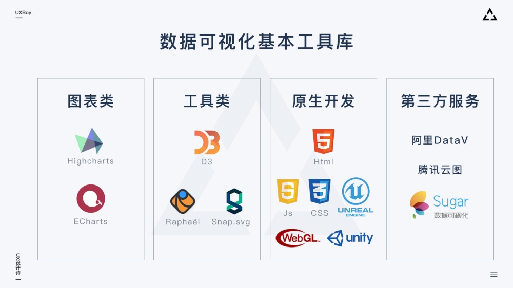 工具類的需要有一定的代碼基礎,里面同樣有豐富的圖表,所以跟開發的溝通也很重要,因為他們可能會了解多一些更新的前沿的圖表形式,是我們設計師不知道的,所以彼此多溝通交流實在太重要了。