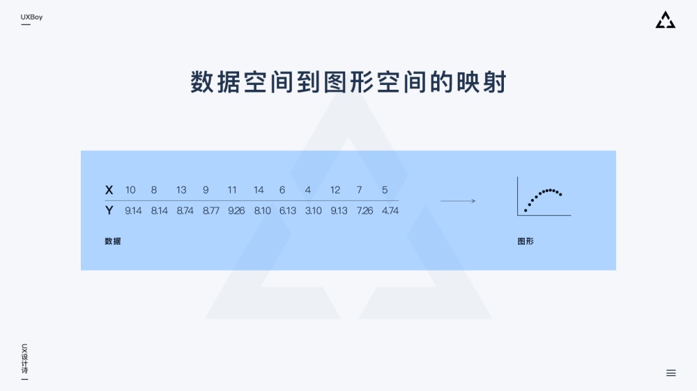 在當前新技術支持下,數據可視化除了「可視」,還有可交流、可互動的特點。數據可視化的本質是數據空間到圖形空間的映射,是抽象數據的具象表達。