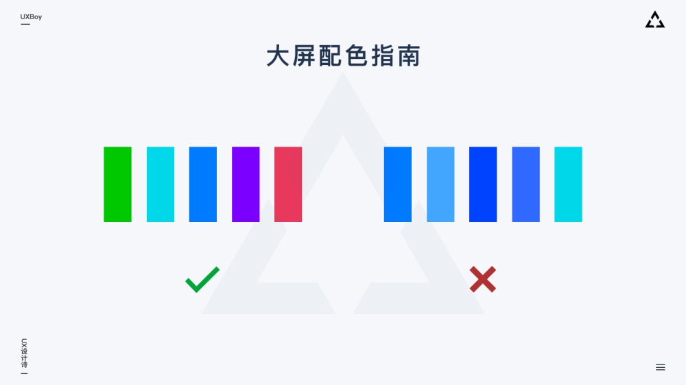 大屏的分辨率、比例、使用環境、投射方式等均會對設計造成影響。理想情況下,我們應該在設計開始前,就能打開大屏系統做一些簡單測試。我們可以從網上收集不同設計師不同風格的大屏設計作品,然后投上去查看實際效果。因為大多數時候大屏都會存在色彩偏差,這時通過測試我們就能發現漸變色、鄰近色等不同類型的色彩搭配是否可以在目標大屏上良好呈現,如果不可以,那我們設計進行時就不要使用顯示效果不佳的色彩搭配。另一方面,樣圖溝通環節及時測試也很重要。