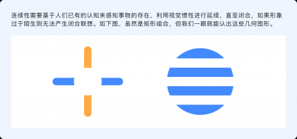 連續性原則指出,人的視覺傾向于完整的連接一個圖形,而不是零散的碎片,通過感知事物的形狀和運動方向將分散的元素連接在一起,使直線繼續成為直線、曲線繼續成為曲線并朝著特定的方向延續。