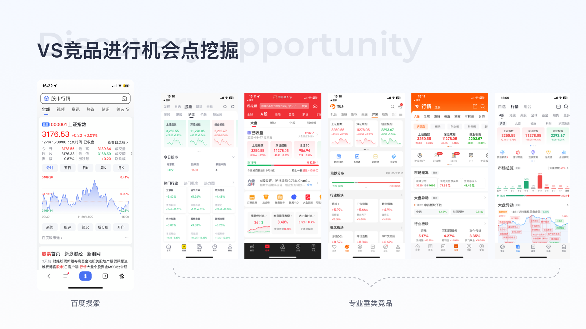競品分析:搜索競品包括今日頭條、夸克、QQ瀏覽器、必應、谷歌均以滿足用戶查找需求為主,信息以純文本形式展現,消費成本較高,且未滿足用戶潛在的開戶需求,垂類競品開戶頁對流程、材料介紹均不完整、缺少完整的介紹及問題解答。
