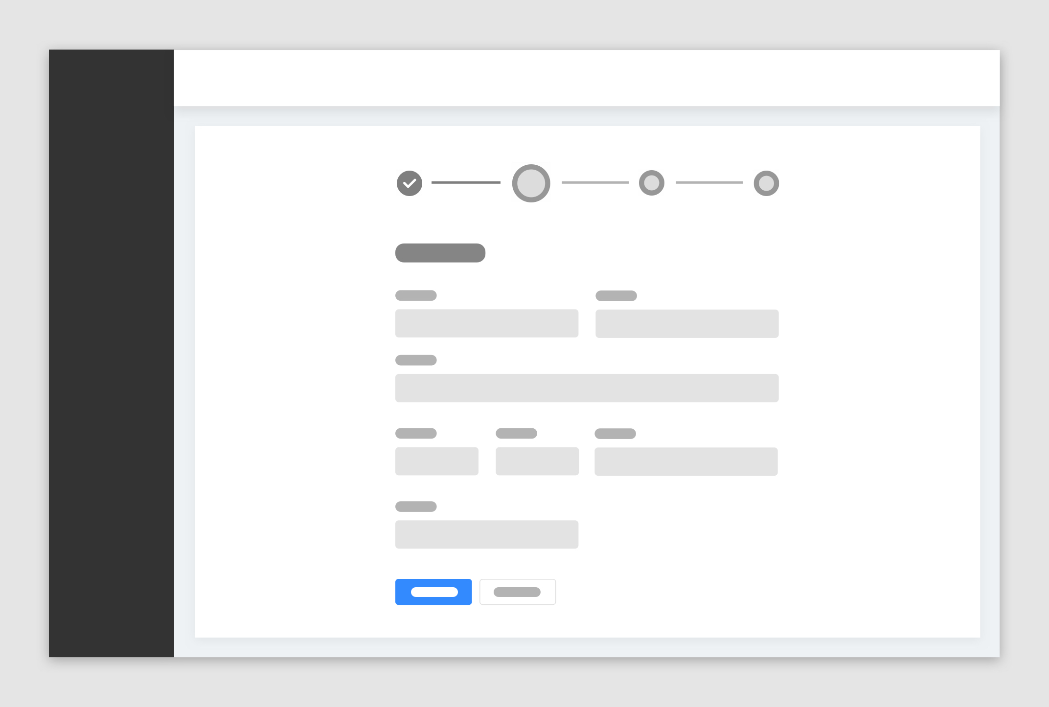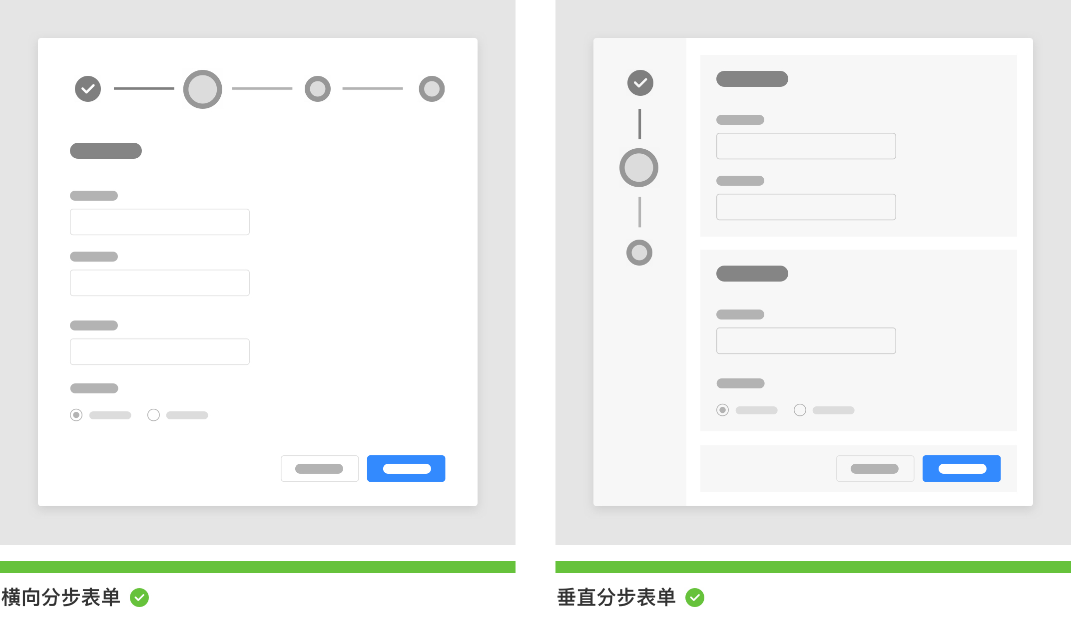 在設計師設計表單時可能業務場景復雜、字段較多,即使設計師把很多不必要的字段都刪除也解決不了根本問題。所以,這時候設計師需要將大型任務分解為一系列較小的任務,使得表單更加的簡潔。這種方式的好處是能將步驟以視覺的方式傳達給用戶數量、名稱、說明等信息,更加提高用戶滿意度并且能激勵繼續填寫。