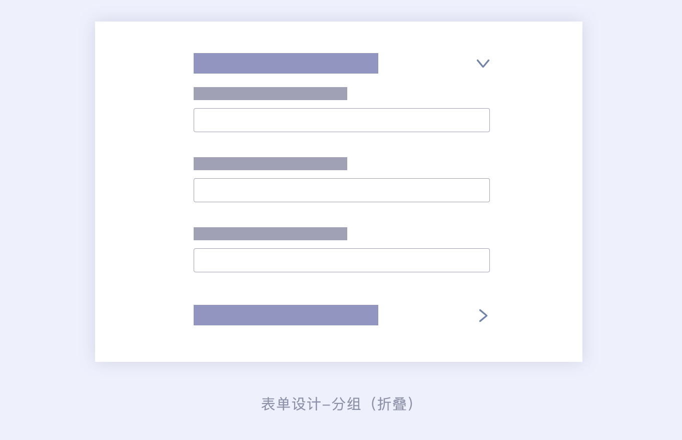 折疊分組用戶可以一眼看全表單所涉及到的大范圍,用戶鎖定某個標題范圍后,再展開去完善對應的具體表單信息,這樣用戶就可以不用在龐大的表單信息中去尋找自己需要完成的表單信息。折疊表單一般會包含一些默認的數值,用戶可不做調整,不調整也不會影響功能的使用。如果說表單信息需要用戶手動完整的填寫或者確認,那么最好不要選擇這種表單的設計方式。