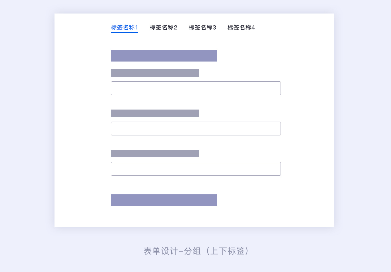 復雜的表單可以采用區域分組的形式,還可以采用標簽分組的設計形式。標簽分組可以一眼看全所有分組大類信息,對于一個表單涉及到多種信息字段的情況,并且每個組的字段信息都是獨立的,不是強相關的,那么我們就可以采用標簽分組的形式。