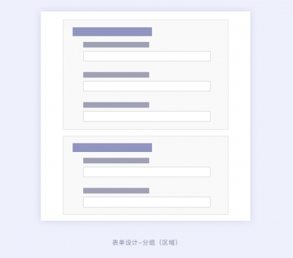 在B端設計中,一些復雜的表單會通過區域分組的形式排版設計,可以將一個表單的信息通過信息的關聯關系劃分不同的區域形成小組信息,這樣有利于信息的歸類以及信息的填寫。用戶在看到復雜表單的時候不會被龐大的表單迷惑,可以更好的找到表單字段,也可以讓用戶填寫表單更有秩序、更清晰。區域分組的使用場景,一般也是針對復雜表單且具有強相關的信息關系。