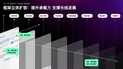 為實現這個目標,我們突破現有框架,創新制定了沿XYZ軸立體擴容的思路。在Y軸方向上,進行了屏效的優化,滿足工具提效需求;沿Z軸拓展了層級,滿足多元服務和互動需求;最后,沿X軸探索第二空間,承載創新型體驗。