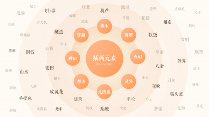 圖形的設計是最容易識別和產生共鳴的。在插畫元素的提煉上,為了能夠與小說網文氛圍結合的更緊密,我們以小說類型為劃分維度得出了一系列的具象的聯想關鍵詞。