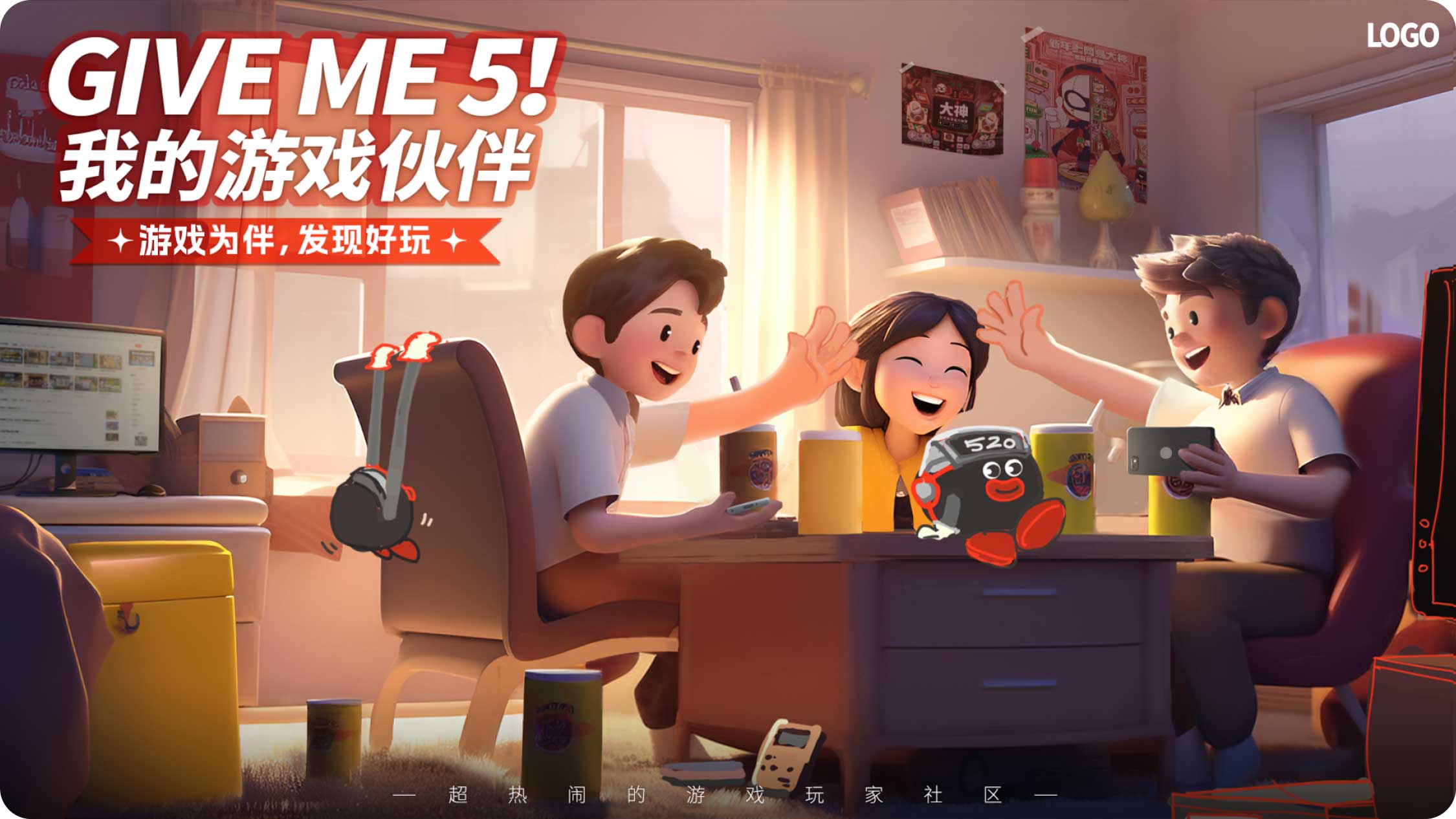 需求方希望畫面能展現出品牌的社交感,以“游戲伙伴”為主題,畫面表達各種不同類型游戲伙伴,因我們的產品而相聚的場景。同時希望畫面中的人物能做出擊掌(GIVE ME 5)的動作,以此呼應品牌發布會的主題。