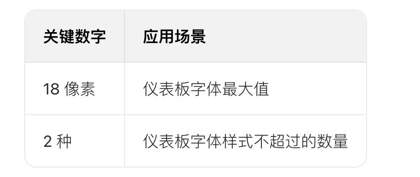 • 在用戶體驗和用戶界面方面,字體的風格和大小同樣重要,設計儀表板時建議使用不超過兩種字體樣式,以實現更清晰的 UI 設計。