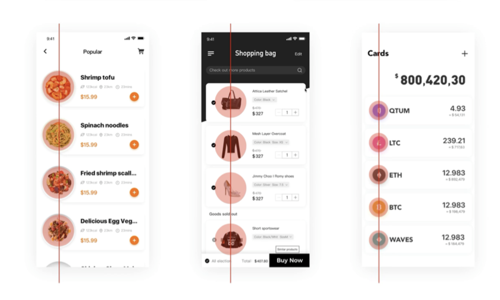 • 連續性:視覺偏向感知連續形式,元素共享明確界限區域則分一組,設計中常用卡片式組合相關元素。