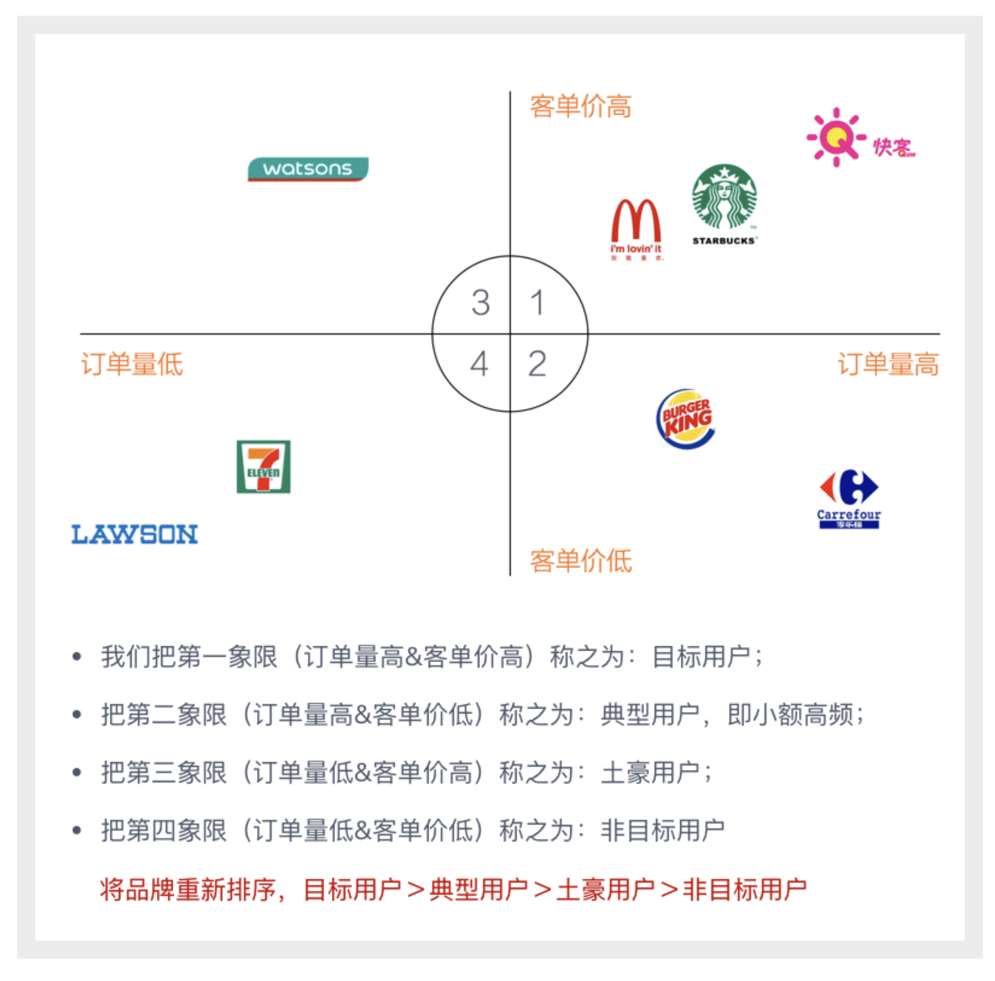 • 設(shè)計(jì)邏輯:基于專業(yè)知識(shí)技能中的 “設(shè)計(jì)判斷力”,運(yùn)用交叉分析方法,結(jié)合用戶畫(huà)像(購(gòu)買偏好)、可用性測(cè)試(用戶使用習(xí)慣)和產(chǎn)品訴求(階段目標(biāo)),將品牌按用戶訂單量和客單價(jià)劃分為目標(biāo)用戶、典型用戶、土豪用戶、非目標(biāo)用戶四類,并按優(yōu)先級(jí)排序展示,增強(qiáng)了功能易用性,提升了用戶匹配度。