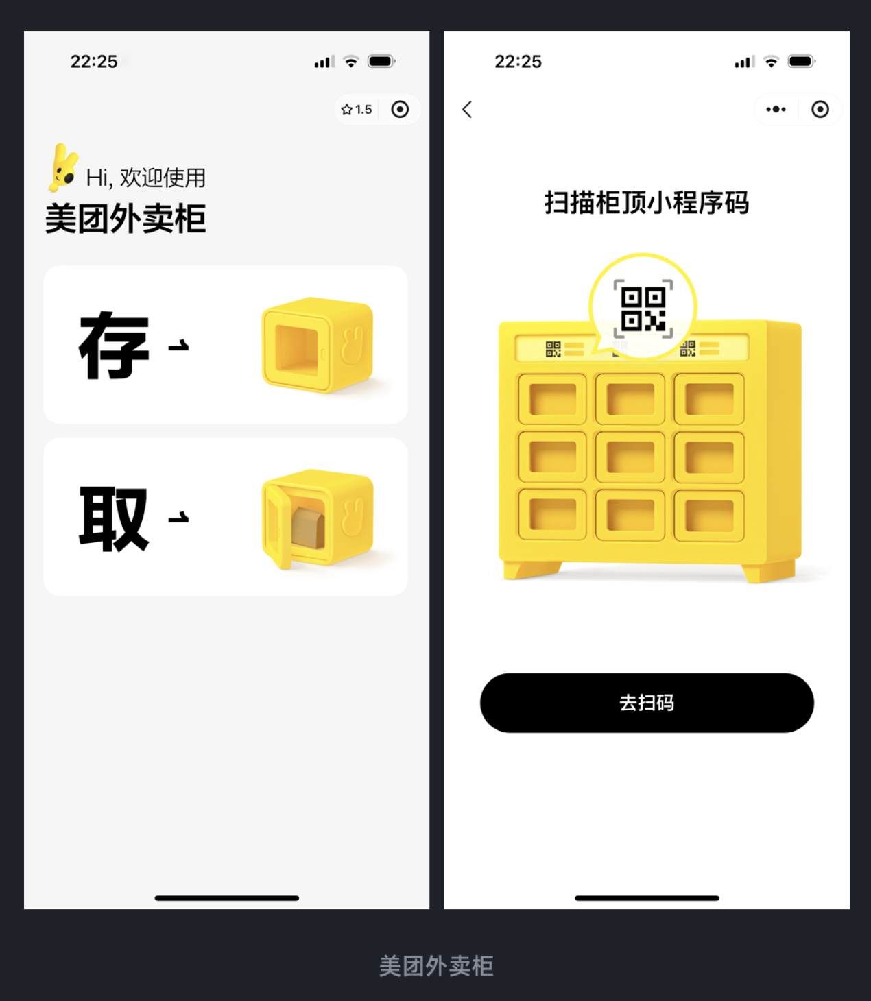 美團(tuán)外賣(mài)柜小程序卻反其道而行之 —— 打開(kāi)界面后,只有 “存” 和 “取” 兩個(gè)核心按鈕,搭配 “掃描柜頂小程序碼” 的簡(jiǎn)單指引,沒(méi)有任何廣告、推薦等多余元素。