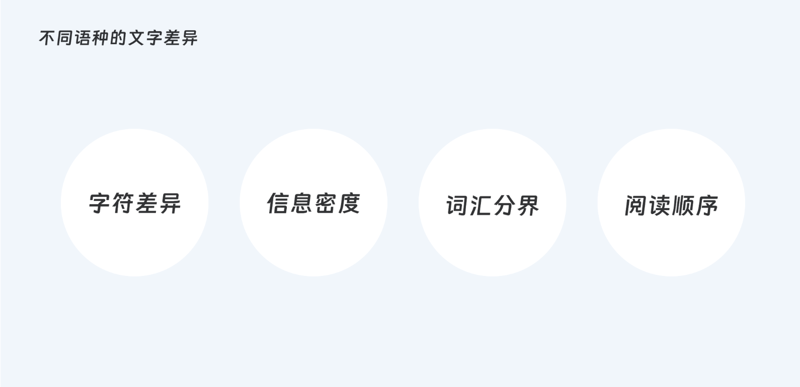 語言文字是文化差異最直觀的體現,而其中四類差異對界面設計的影響最為顯著,直接決定了適配方案的方向: