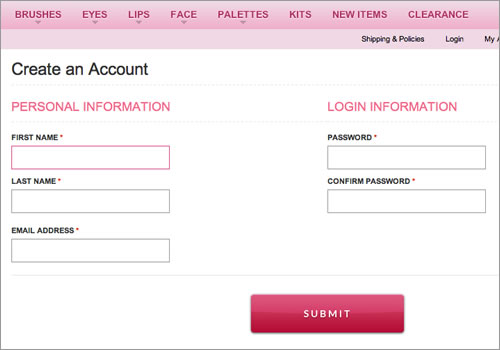 Forms should never consist of more than one column. Notice how easy it is to ignore the column on the right here on Makeup Geek (not to mention the note about “Required fields” at the bottom).