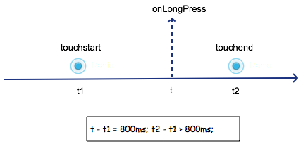 長按應(yīng)該是最容易分解的手勢。我們可以這樣分解:在 touchstart 發(fā)生后的很長一段時間內(nèi),如果沒有發(fā)生 touchmove 或者 touchend 事件,那么就觸發(fā)長按手勢。