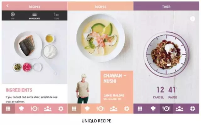優衣庫出品的RECIPE,是一個讓人眼前一亮的設計案例,多彩色的設計風格融入到整個APP中,不論是切換標簽頁,還是在內容組塊中滾動,都會變更不同的主題色。色彩切換的時候,還會有淡入淡出的效果,讓切換變得自然而然,完全不生硬。