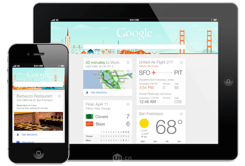 我們都知道你的app和網站在不同的設備下保持適配是一件很重要的工作。而卡片式設計就能很好的幫助我們來完成這一點??ㄆ皆O計從根本上來說就是將頁面內容進行分解,然而再整合一個無法再進行分解的元素。而響應式設計要求的就是我們可以根據屏幕尺寸的大小對頁面內容就行調整??ㄆ皆O計就可以對頁面內容進行分割重組來適應不同的屏幕。比如這個Google在手機設備上顯示一個卡片,pad端顯示兩個卡片。