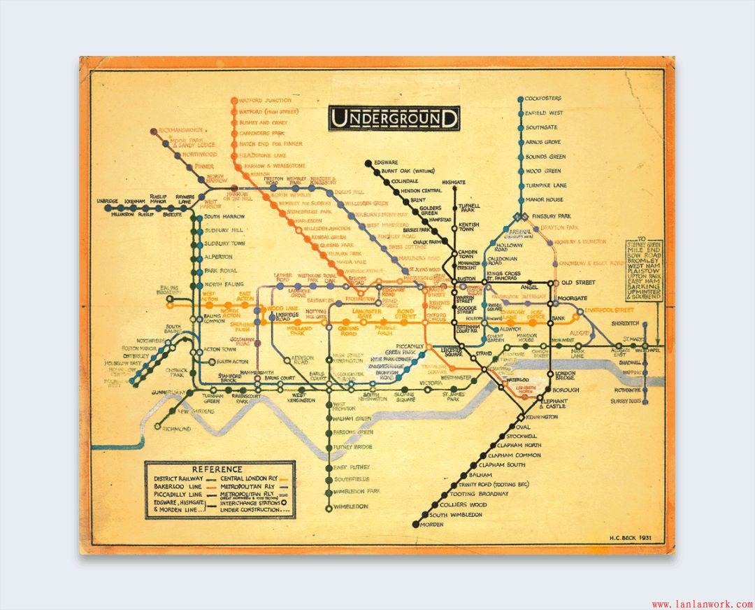 說到英格蘭,信息圖表歷史上的一大步是在1933年,當時哈里貝克創(chuàng)建了倫敦地鐵的第一張地圖,只顯示了描繪公共交通路線和車站的線路。這是一個重要的發(fā)展,因為它將視覺圖表移動到日常生活中。