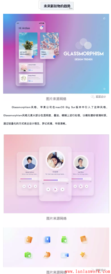 從輕擬物風格到Glassmorphism風格,擬物化設計的演變進程已然開啟,未來,無論是3D設計的加入還是扁平風格的延續(xù),“質感”都將成為設計過程中被著重強調的風格。