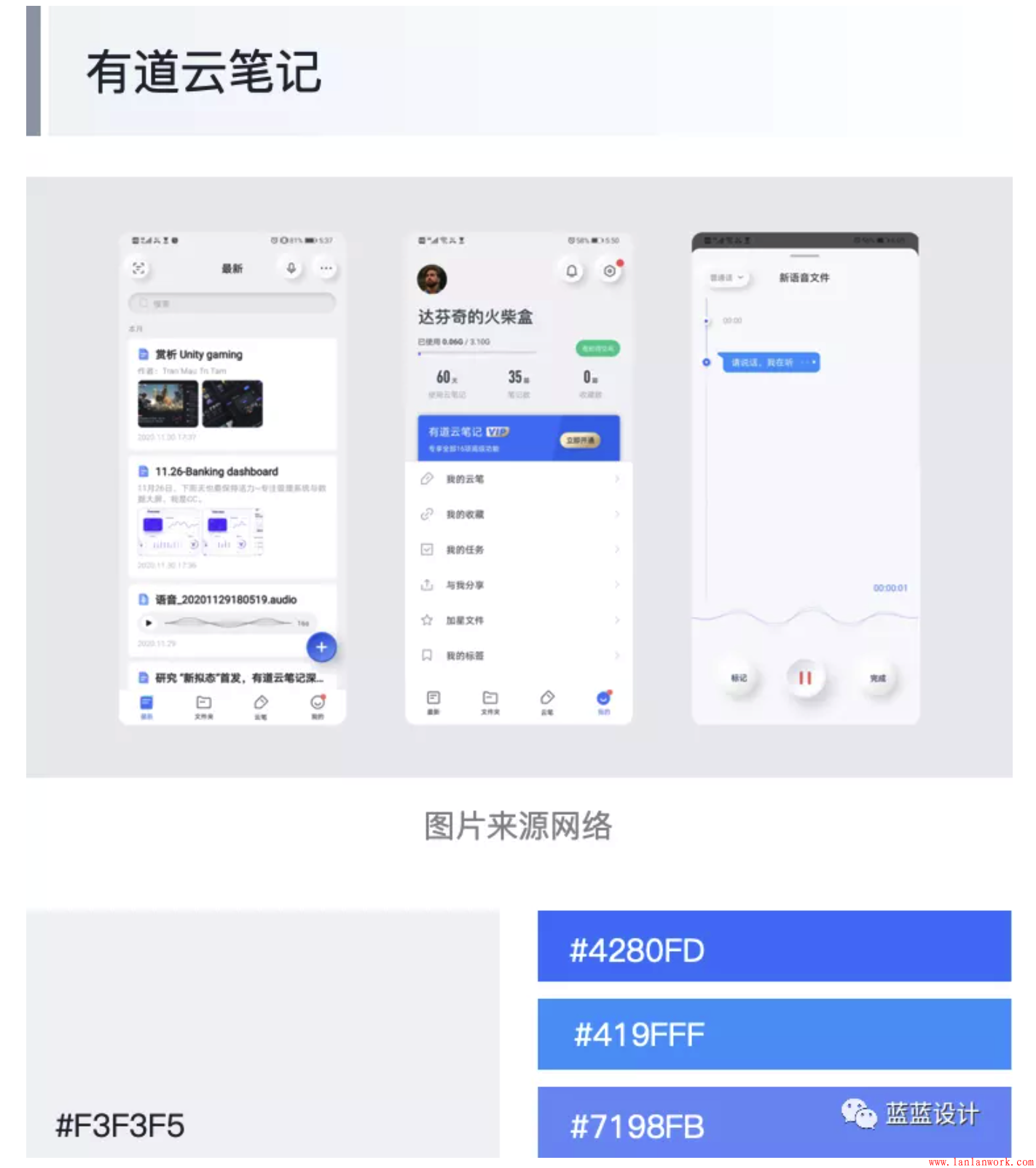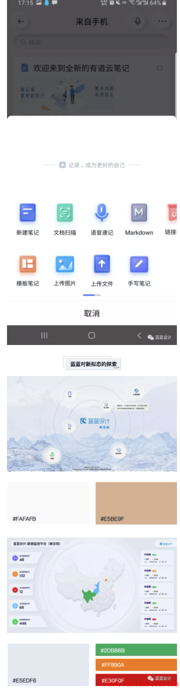 這是一款多平臺記錄工具,有道云筆記的擬物化設計風格相對謹慎,主要的操作按鈕部分,均采用了“擬物化的”風格,但是在大面積的展示區(qū)域和非功能性按鈕依然沿用了簡潔的扁平化設計。在保證“新擬物”質感的同時,保證主體內容的可閱讀性,和整體頁面的清爽感。