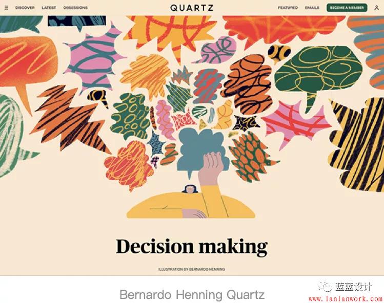 這種風格的插畫非常像凌亂的涂鴉,乍看未完成,但所有的細節(jié)都是經過深思熟慮的。重疊的形狀和強烈的色彩讓這些插畫與眾不同,同時能有效激發(fā)靈感。