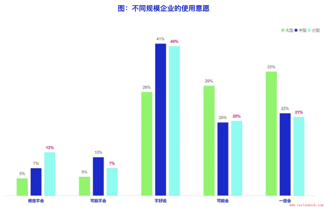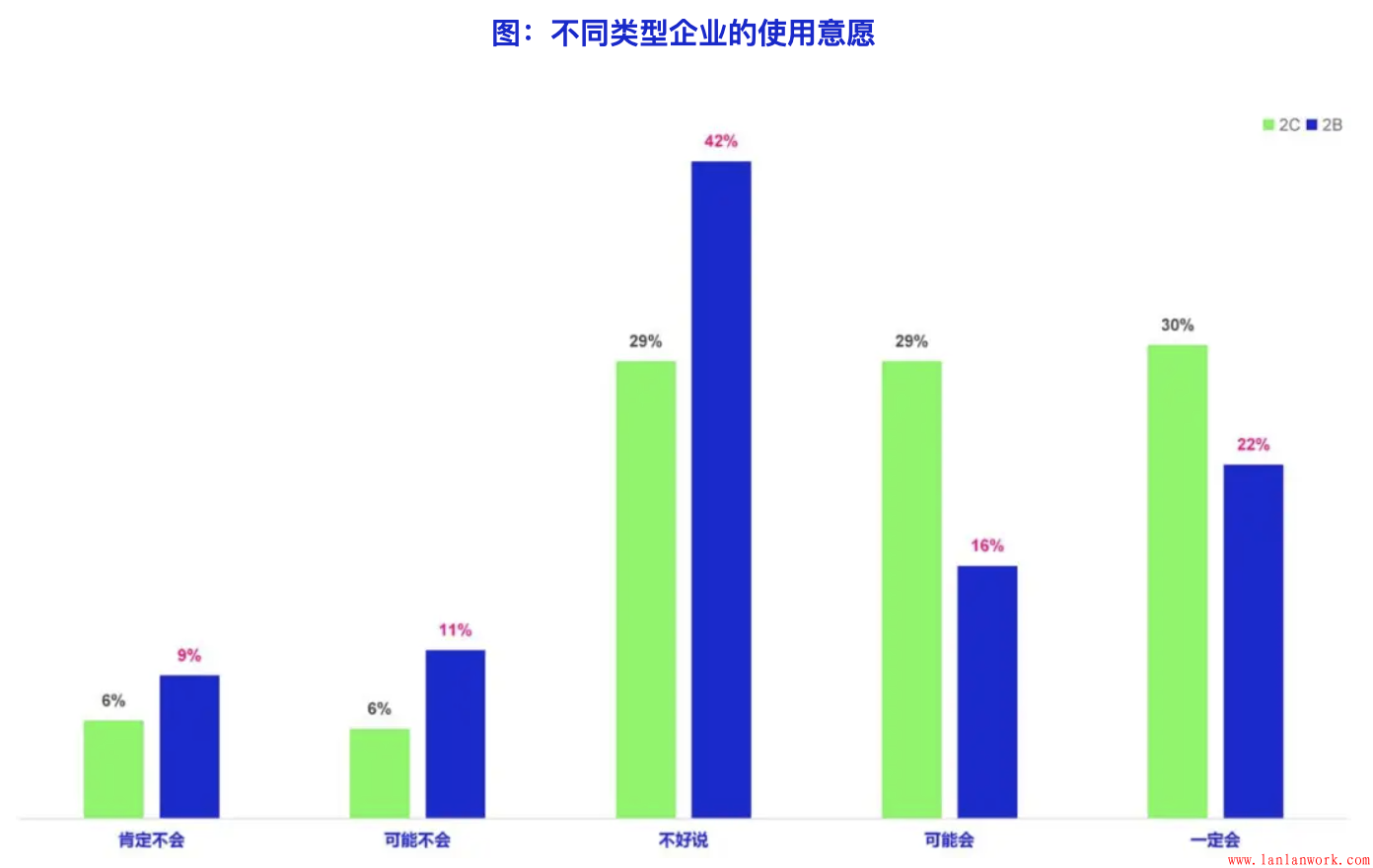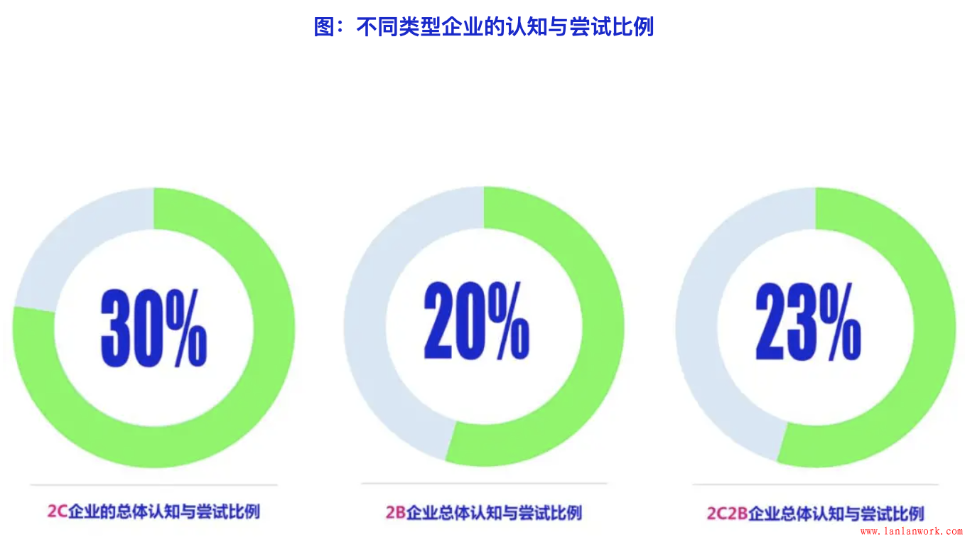 不同類型的企業未來使用客戶旅程方法的可能性也存在明顯差異。使用客戶旅程越久、使用頻率越高,獲得的效果越好的企業,繼續使用客戶旅程方法的傾向越高。2C企業比2B企業未來更愿意使用客戶旅程,雖然2B企業獲得效果更明顯,但2B企業使用客戶旅程的難度和成本更多到,導致2B企業的使用意愿要明顯低于2C企業。另外,相對于中型和小型企業,大型企業的使用意愿明顯更高,表示可能會使用的比例達到了61%,明顯高出中小型企業。