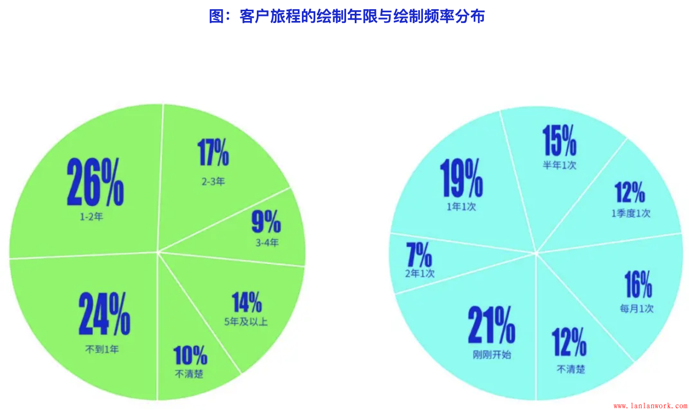 由客戶研究部門和團隊主導客戶旅程的繪制時目前的最常見的模式,其次是設計部門,以及客服、品質部門主導。但產品、戰略、營銷、銷售部門主導的情況也一定的比例,這也說明目前開展客戶旅程應用的企業,其目的存在多樣性。不同部門來主導,其方法和應用上也會存在差異。