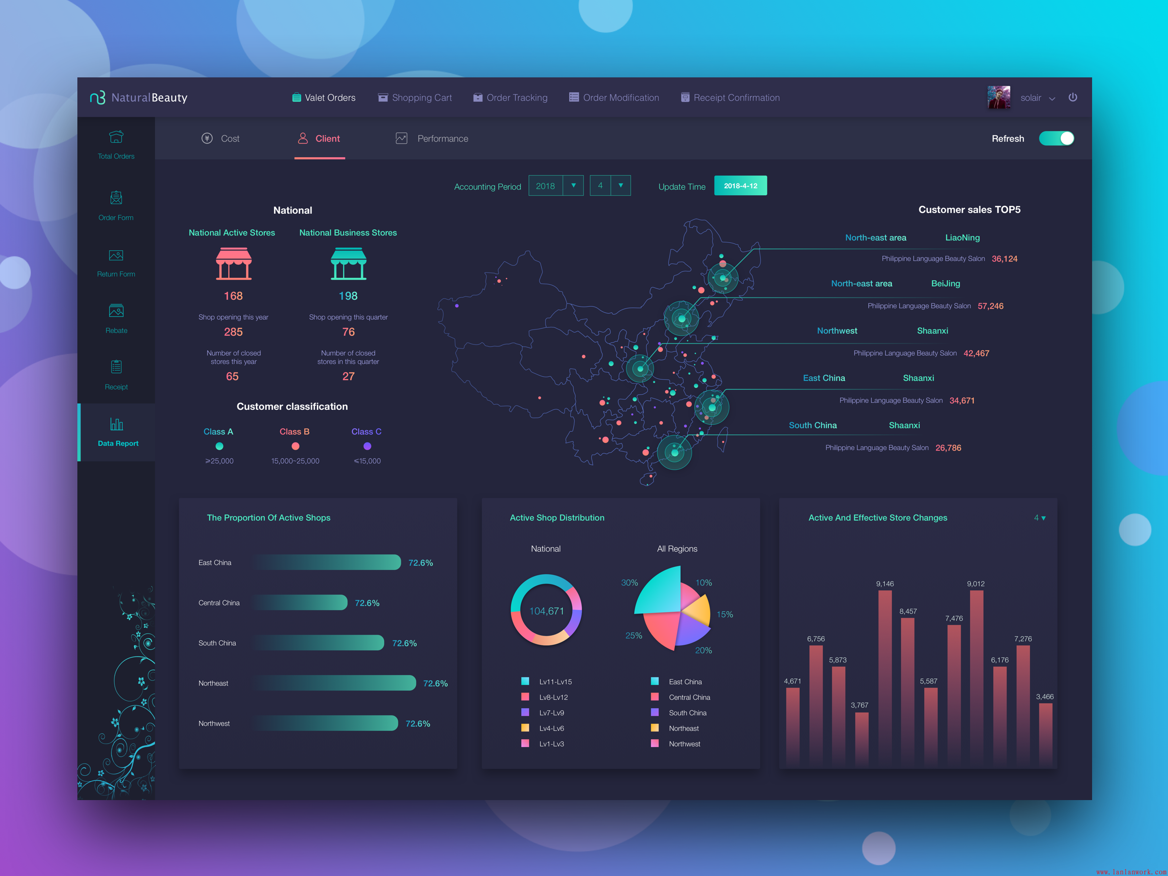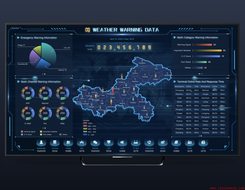 大屏可視化界面設計可謂是當今行業(yè)、企業(yè)發(fā)展的見證,生動直觀地再現(xiàn)了行業(yè)、企業(yè)的全貌。不僅作為展示,方便了解、監(jiān)督;同時可以作為一個有效的管理平臺,帶來效益。大屏界面面向范圍廣,協(xié)同性好,易于被采用。下面幾個大屏的界面設計,沉穩(wěn)的背景上,加上亮色作為點綴和強調(diào)。既不失其風格,又富有靈動性。