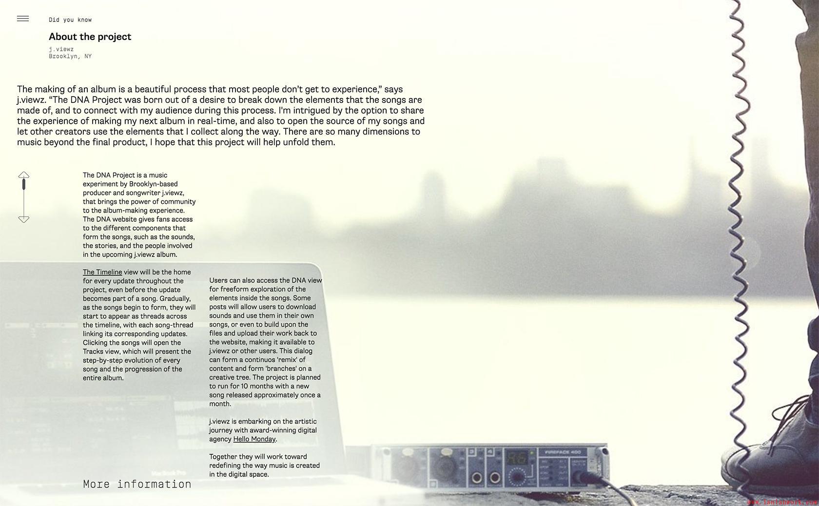 例如,DNA項目是一個使用一系列脫節(jié)層次結構來傳達音樂家專輯創(chuàng)意結構的網站。該網站的結構很復雜,專輯的結構也是如此。