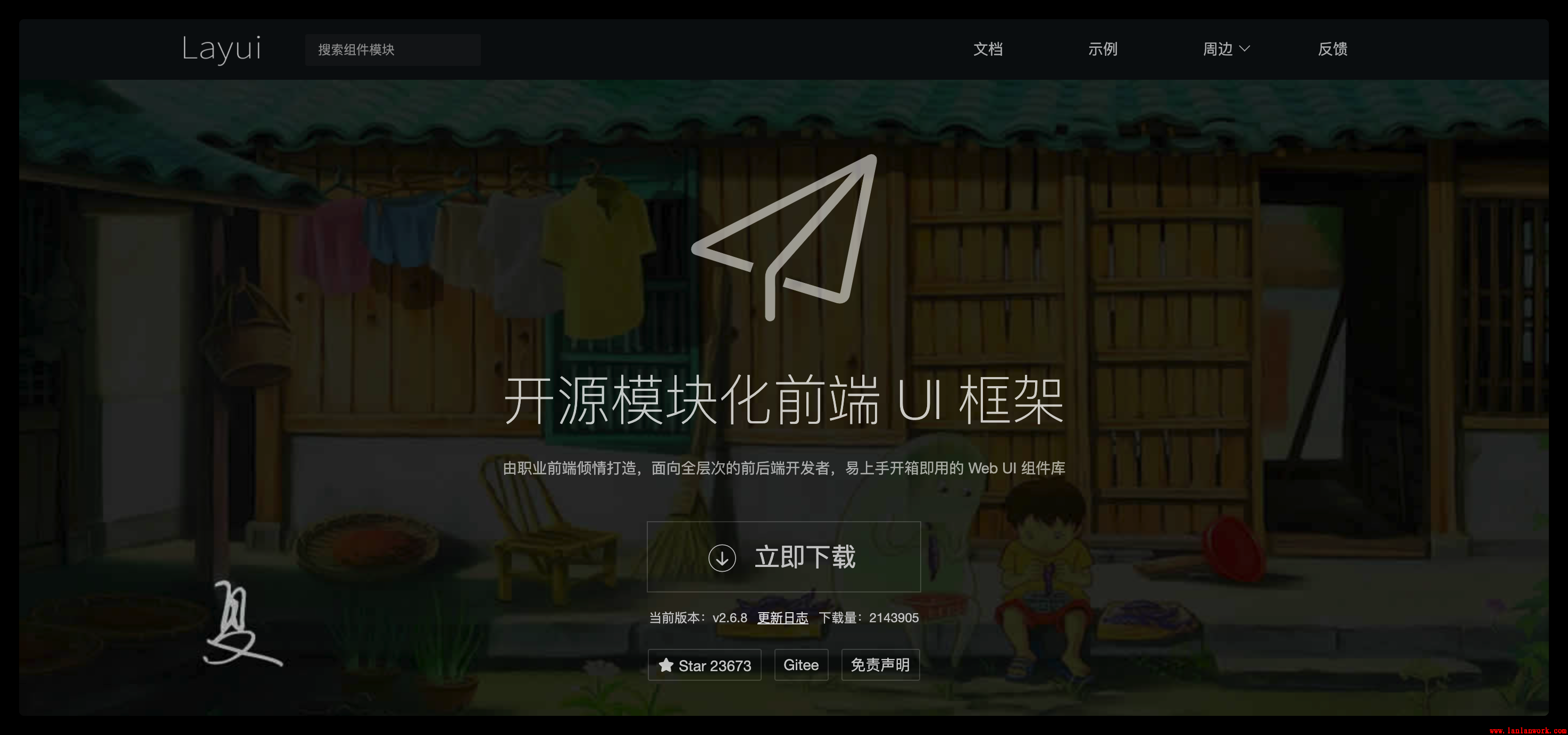 Layui 是一款采用自身模塊規范編寫的情懷型前端UI框架,遵循原生HTML/CSS/JS的書寫與組織形式,門檻極低,拿來即用。其外在極簡,卻又不失飽滿的內在,體積輕盈,組件豐盈,從核心代碼到API的每一處細節都經過精心雕琢,非常適合界面的快速開發。