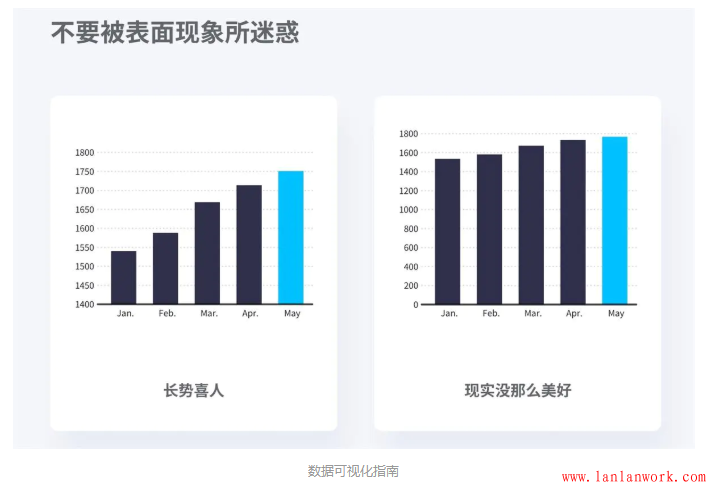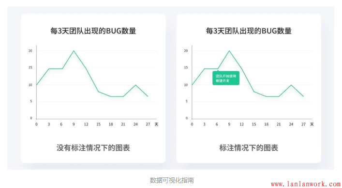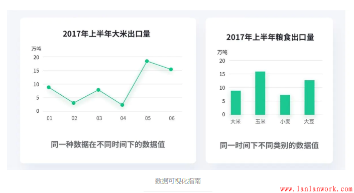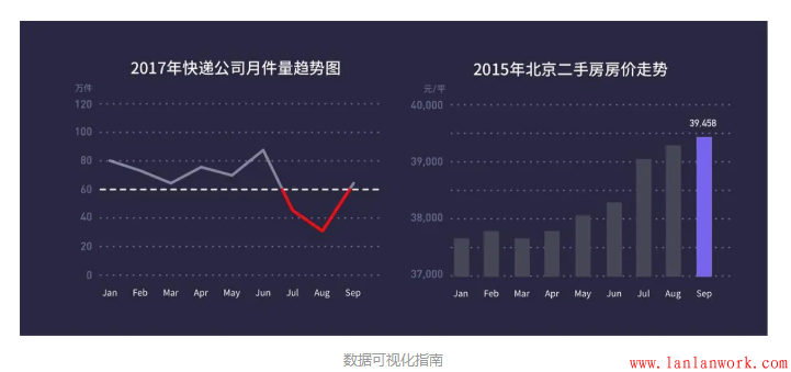 (1)比較數據差異情況。基于分類的數據,可以通過比較數據來了解不同分類的差異,比如柱狀圖。基于流程的數據,可以通過比較數據了解數據的變化趨勢,比如折線圖。