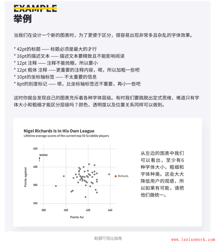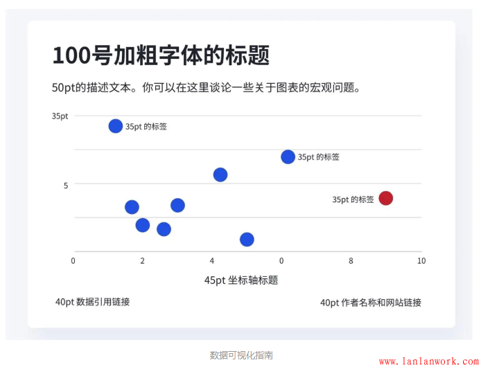 避免有個性的襯線字體,字體要保證清晰可見。字體大小適中,太小影響閱讀,太大容易占用圖表控件。普通字體大概12px,標題用14px。