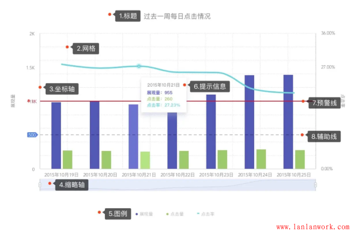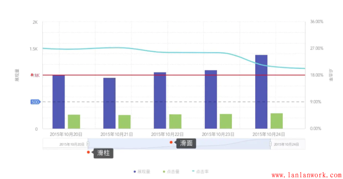 數據產品不要試圖去掩蓋問題,而要反映真實數據,暴露問題,并且和用戶一同解決。比如對數據閾值進行監測,預警線就是很友好的可視化方式。
