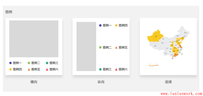 5.圖例。離散型數據包括橫向排列和縱向排列,連續型數據包括連續圖例。