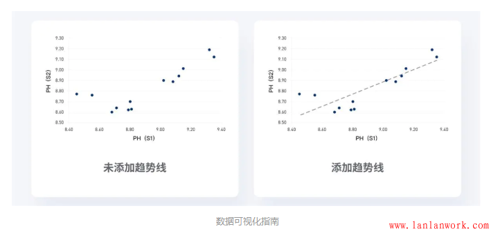 (1)根據數據特點選擇橫縱向輔助線,橫向引導線增強水平方向的導視。縱向引導線增強垂直方向的導視。