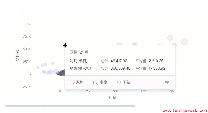 3.數據鉆取。單擊某個數據可以看到該數據的詳細信息,變換分析的粒度。