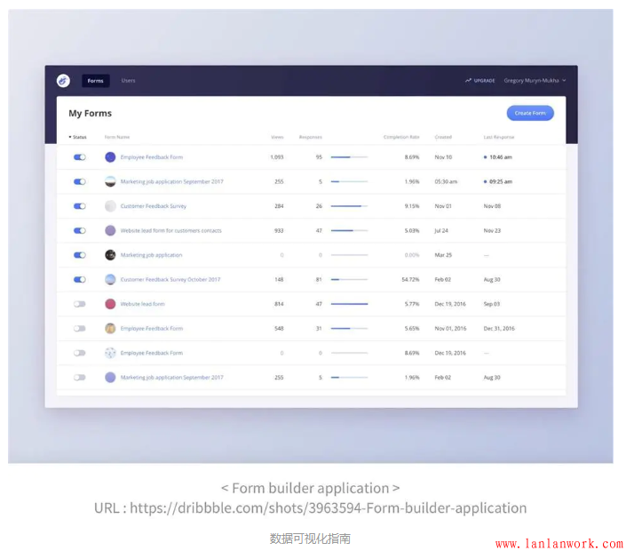 筆者剛開始學習數據可視化就是拿著數據表格不停地在競品上摸索,作為一名用戶去感受這些圖表的交互體驗。這里推薦一份數據可視化網站名單。
