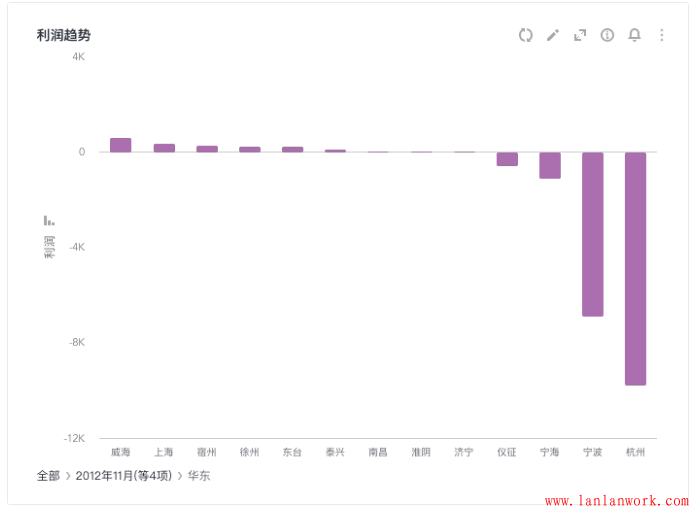 (1)輕量。眾所周知表格是可以承載數據的全面性,但將相同的數據用可視化展示時,設計師總想將所有的信息堆砌在圖表上,顯得圖表非常笨重,因此增加了用戶的思考時間。在此建議明確你圖表類型的特點,將主要信息呈現在圖表上或者分層展示圖表,比如數據鉆取功能。