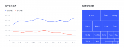 3.各平臺組件庫引用覆蓋-我們提供了基礎、業務、圖表3個大組件庫,從這個數據可以獲知各個業務平臺都引用了前述的哪些組件庫,以及各引用了多少組件。