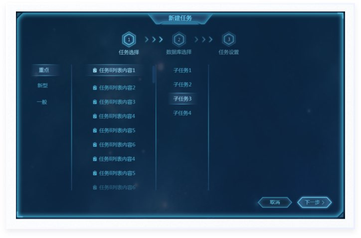 視覺方面使用大屏常用的深色背景,主色采用藍色配色,通過整體排版,元素的設計,來凸顯科技感。頁面布局方面,采用模塊化布局,便于區(qū)分信息類別;扁平化的視覺元素+框式設計,最大程度地減少頁面元素的干擾,提升頁面內(nèi)容承載量。